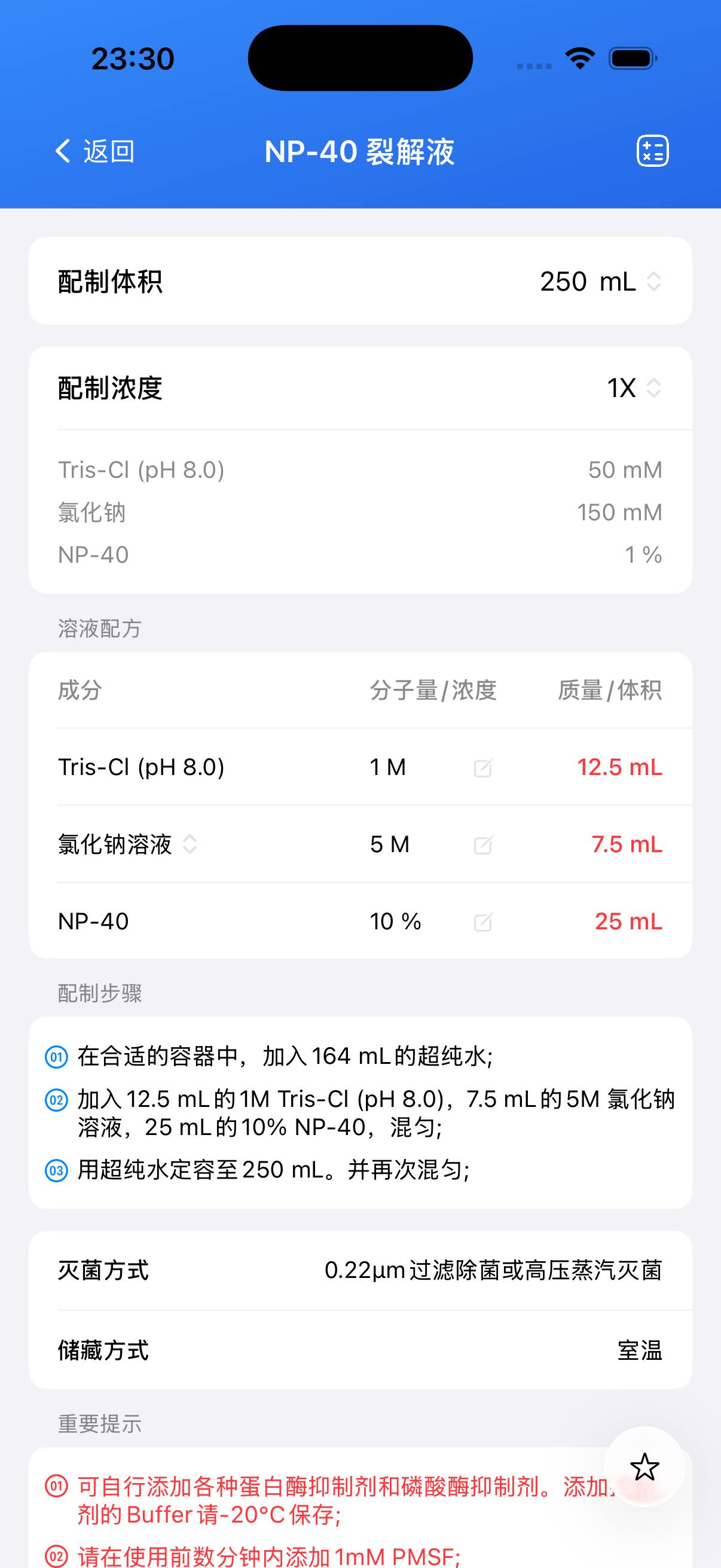 - 如采用高压灭菌,NP-40请在灭菌后再添加。