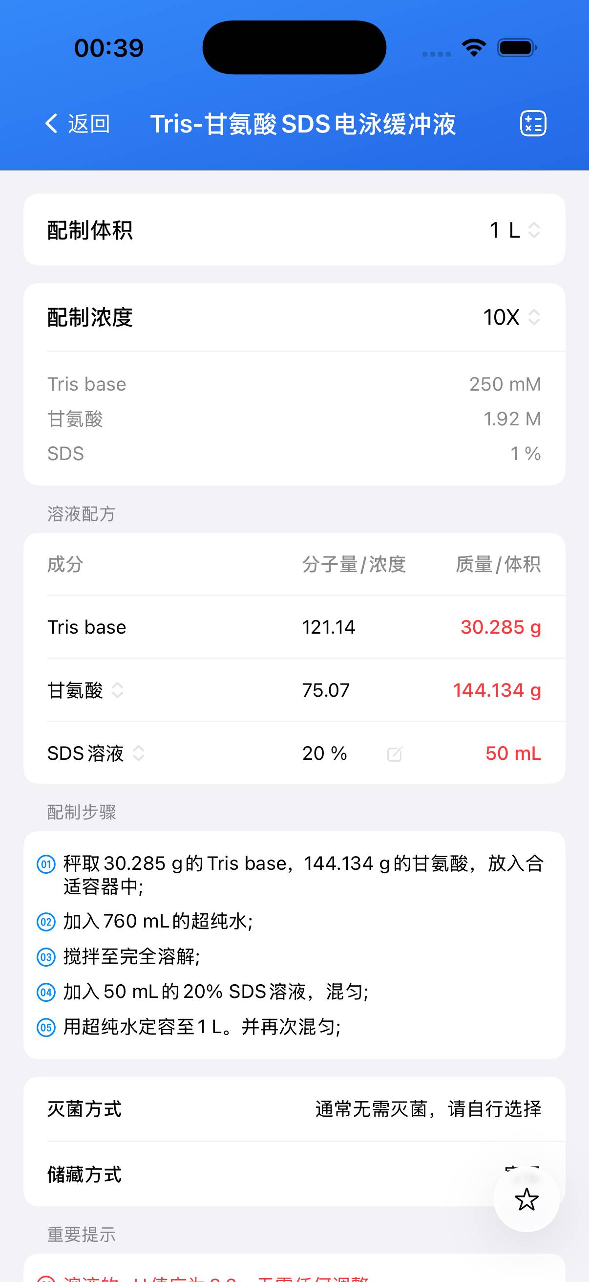 - SDS 易产生气泡,加水时应沿容器壁缓慢加入,避免剧烈搅拌,以减少泡沫产生;