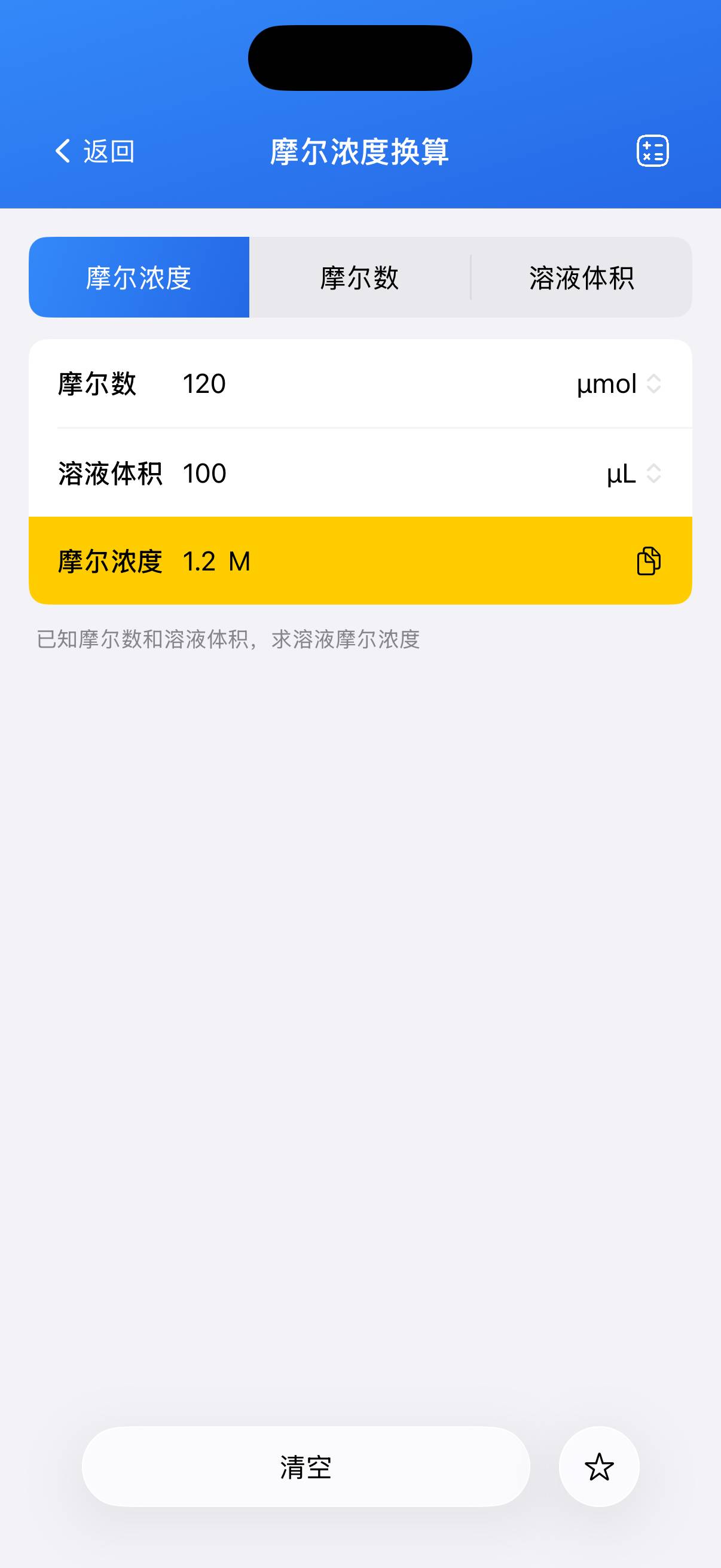 本工具可自动完成所有必要的单位换算(例如 mmol → mol、µL → L), 使用户能够专注于实验设计,而非繁琐的计算过程。
