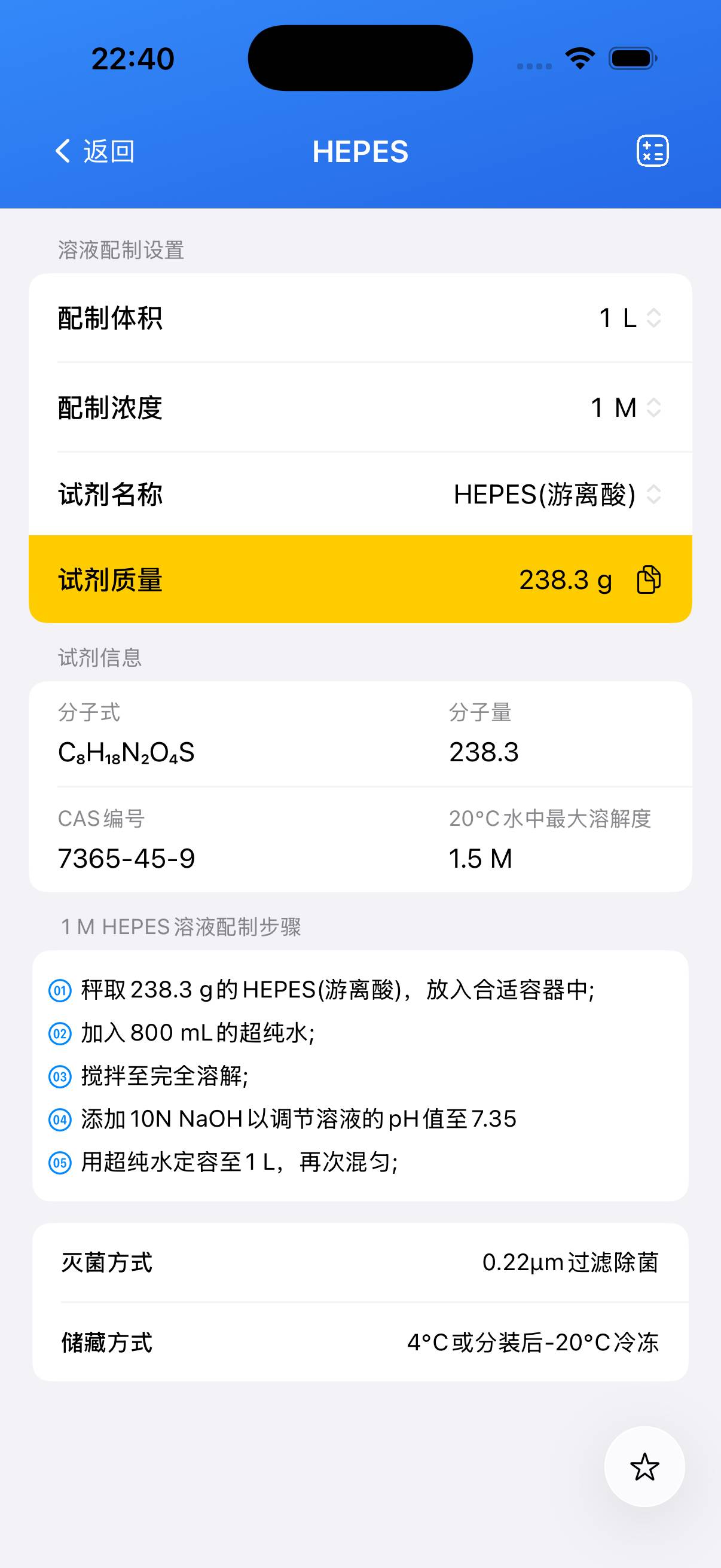 | HEPES(游离酸) | C₈H₁₈N₂O₄S | 238.30 g/mol | 7365-45-9 |