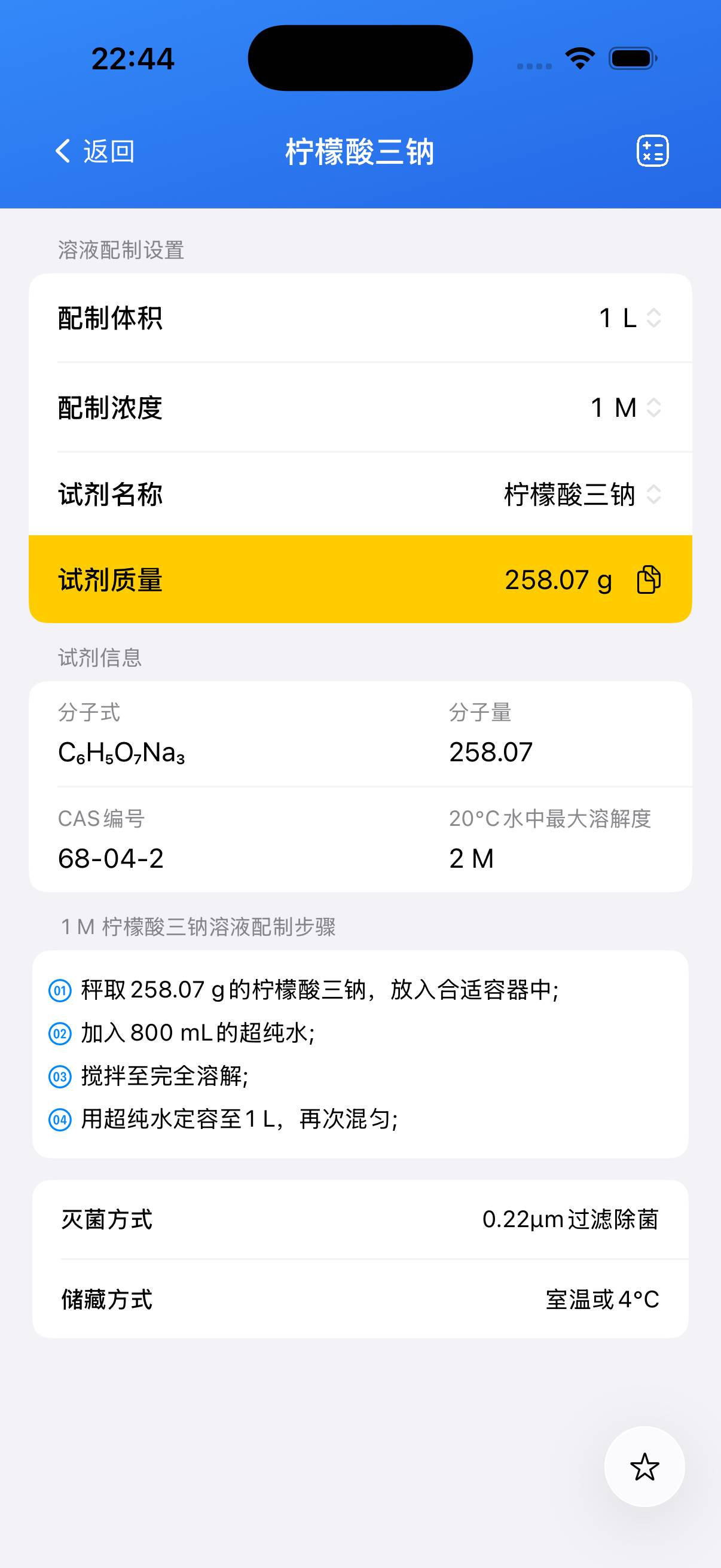 储备溶液配制指南 —— 柠檬酸三钠 (C₆H₅O₇Na₃) 溶液
