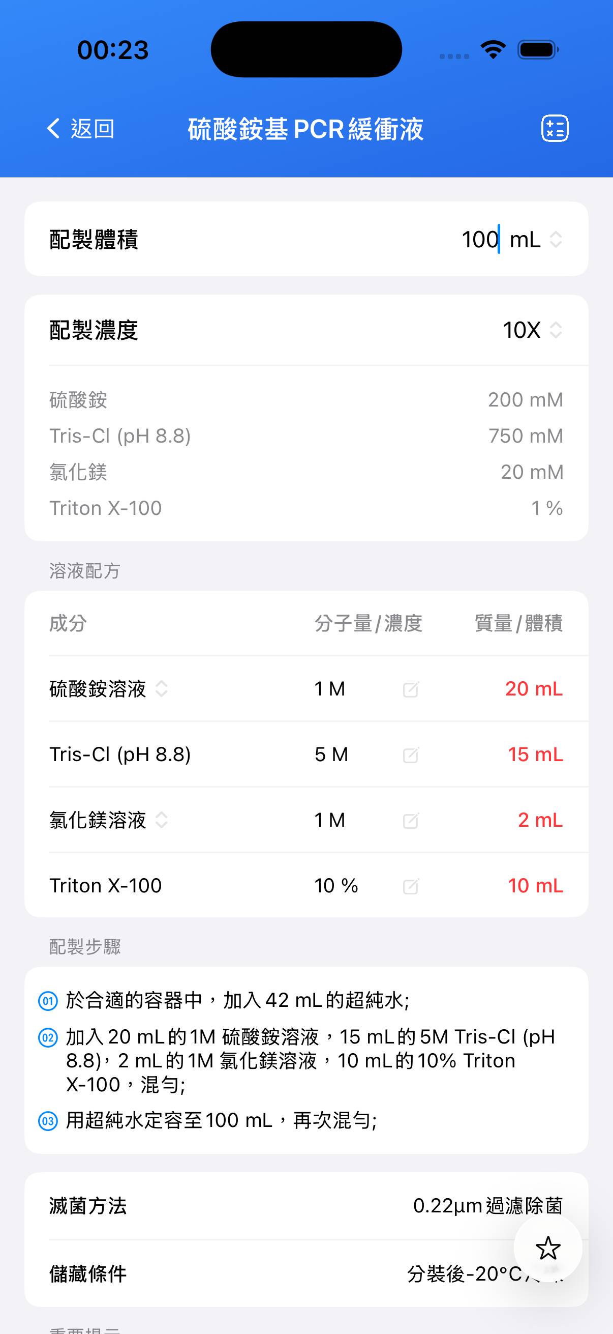 - Triton X-100極為黏稠,建議使用低濃度儲備液,也可用Tween 20替代。