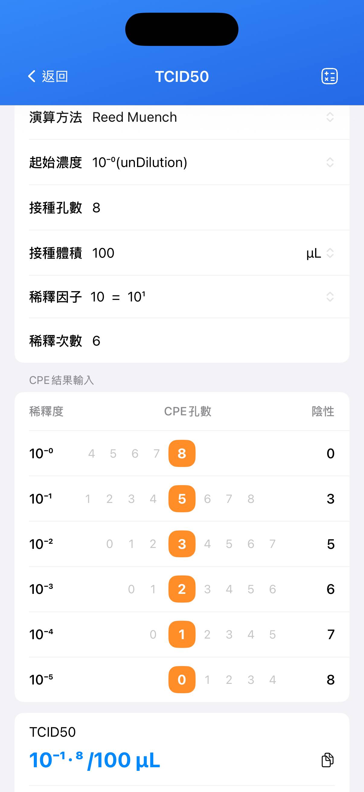 使用本工具可以計算病毒庫的 TCID50(50% 組織培養感染劑量)。