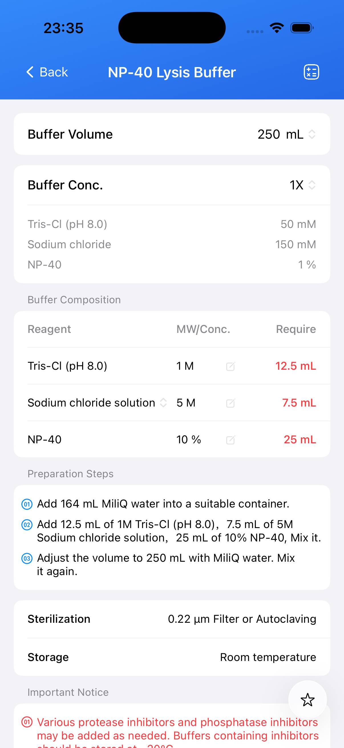 Preparation NP-40 Lysis Buffer