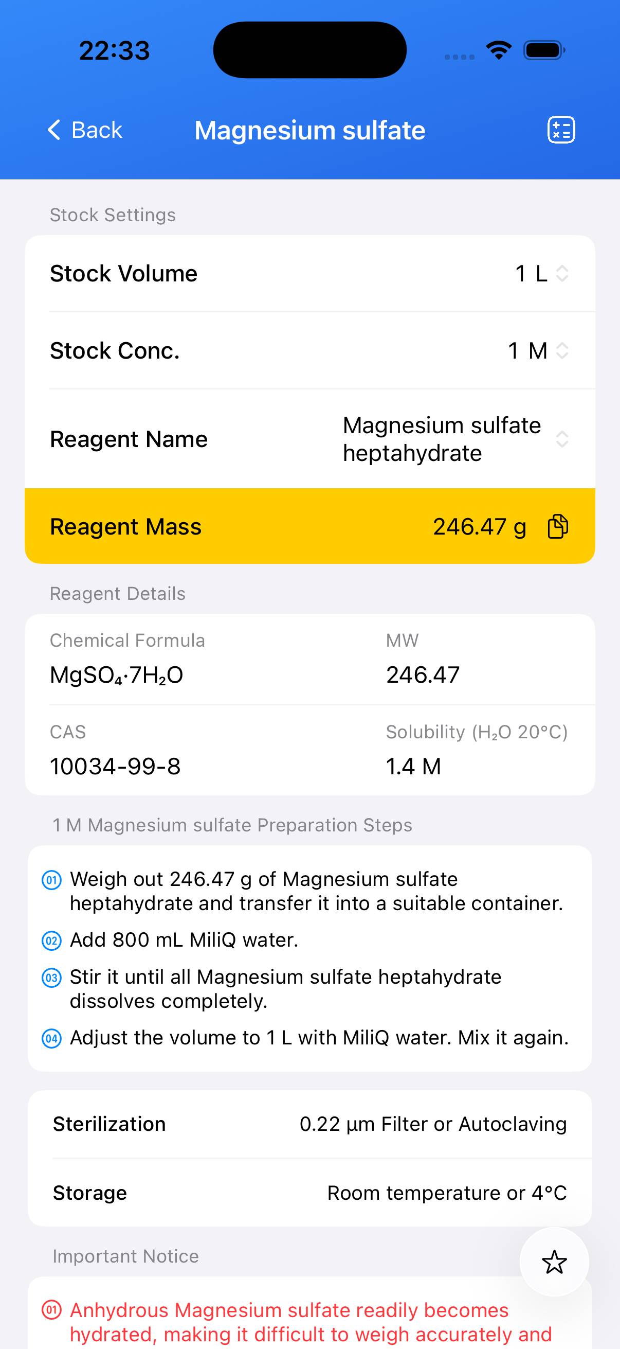 This guide describes the preparation of Magnesium sulfate Stock Solution at a defined molarity for laboratory use.