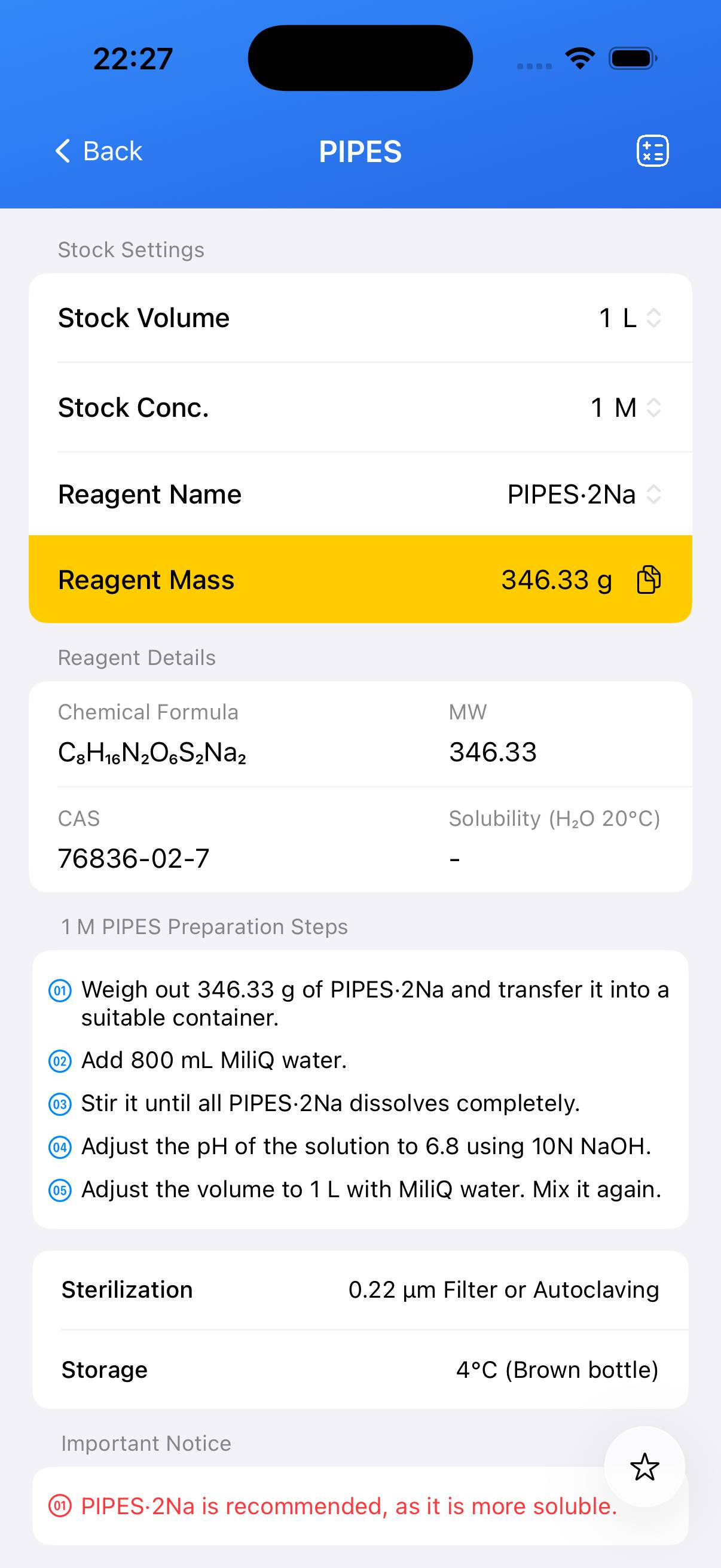 • Common Salt Forms: PIPES·2Na, PIPES·Na, PIPES·1.5Na, PIPES (Free Acid)
