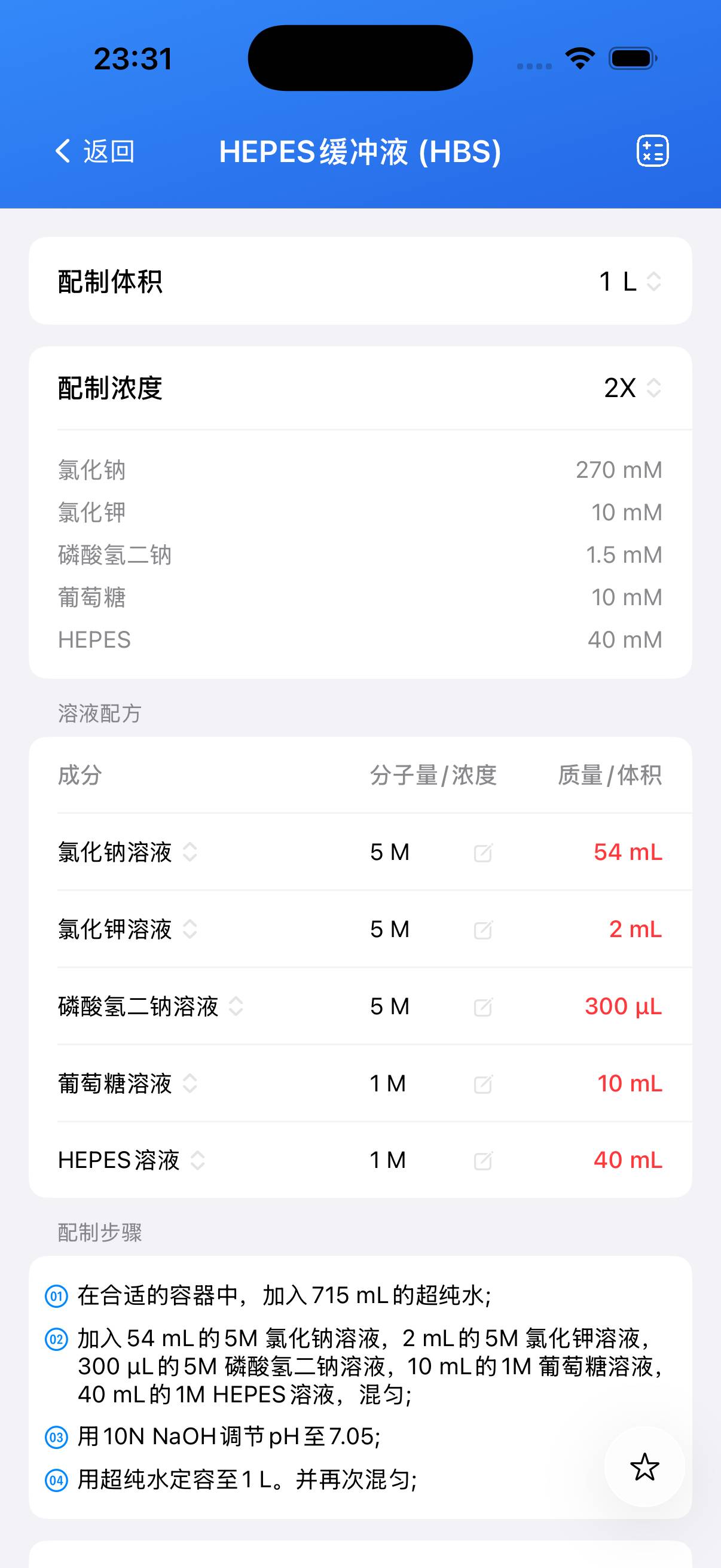 HEPES缓冲盐水(HBS)常用于转染实验和细胞培养应用。