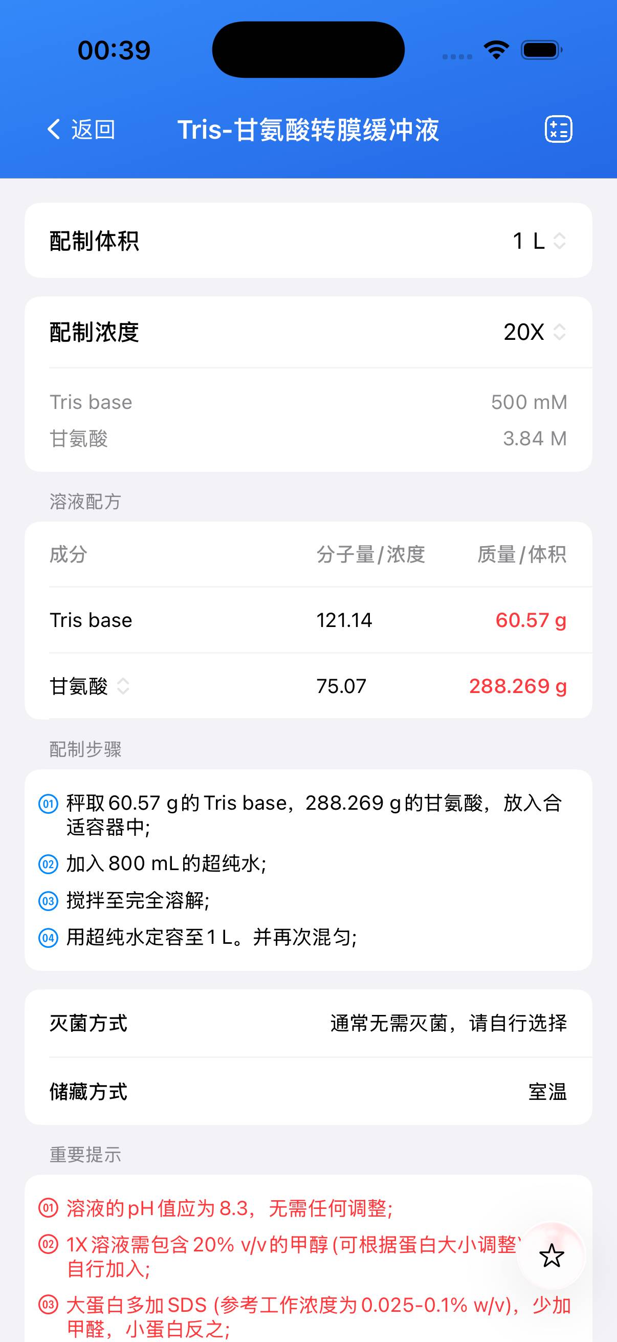 Tris-Glycine转膜缓冲液常用于Western blot蛋白转膜实验。