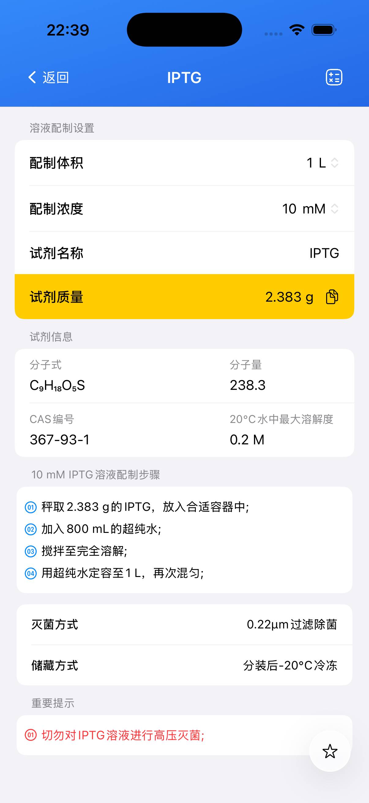 储备溶液配制指南 —— IPTG