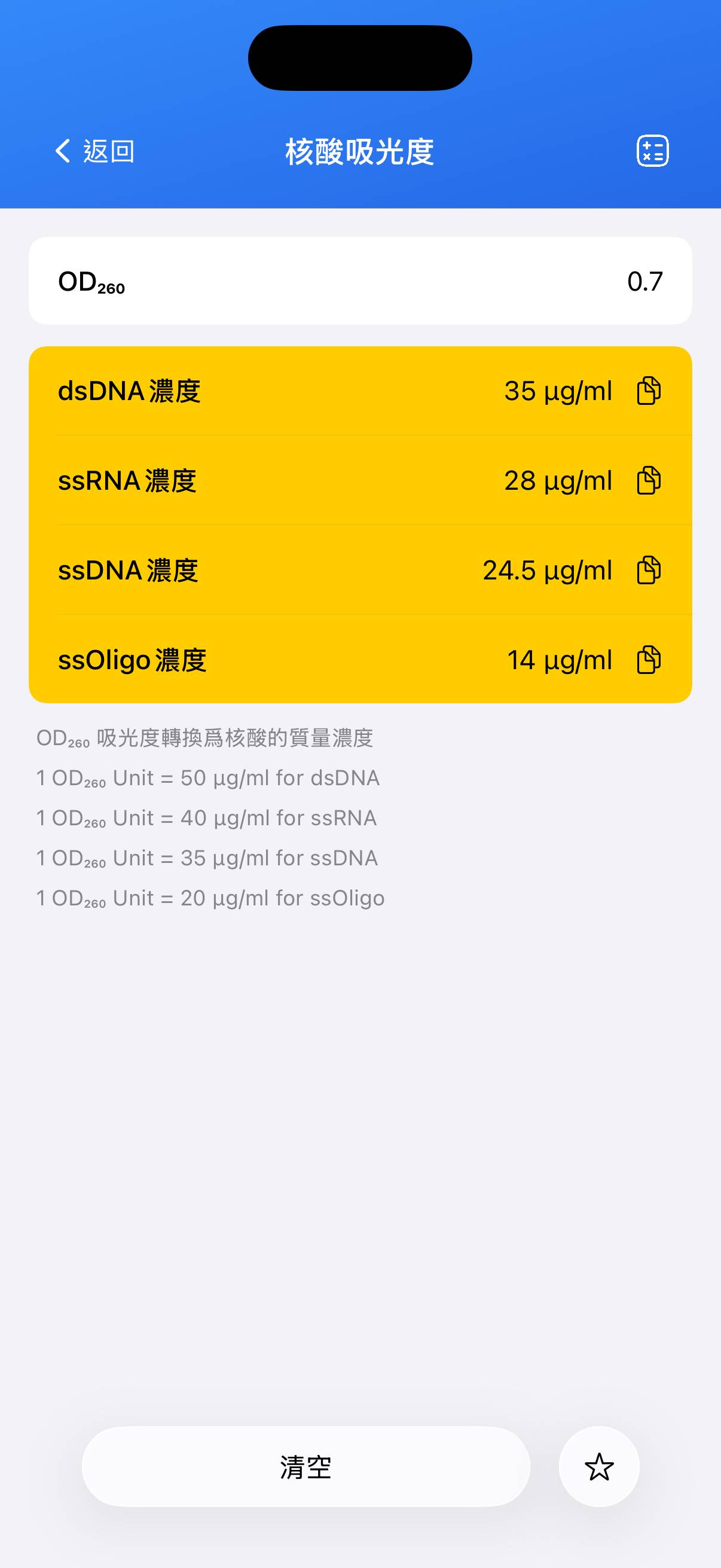 OD260 核酸濃度計算器